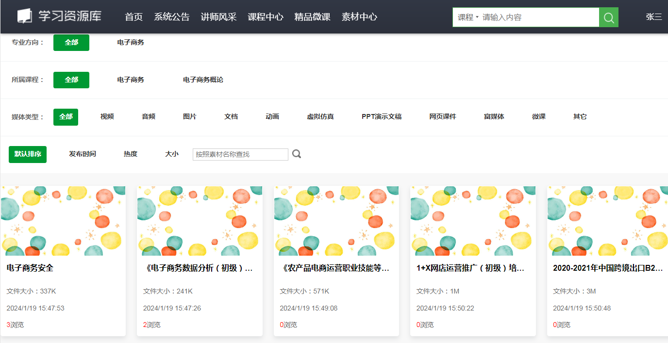 7、教學資源分類統計,管理便于用戶快捷訪(fang)問,下載。