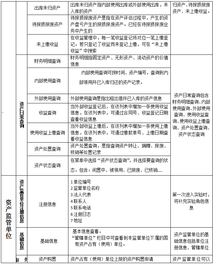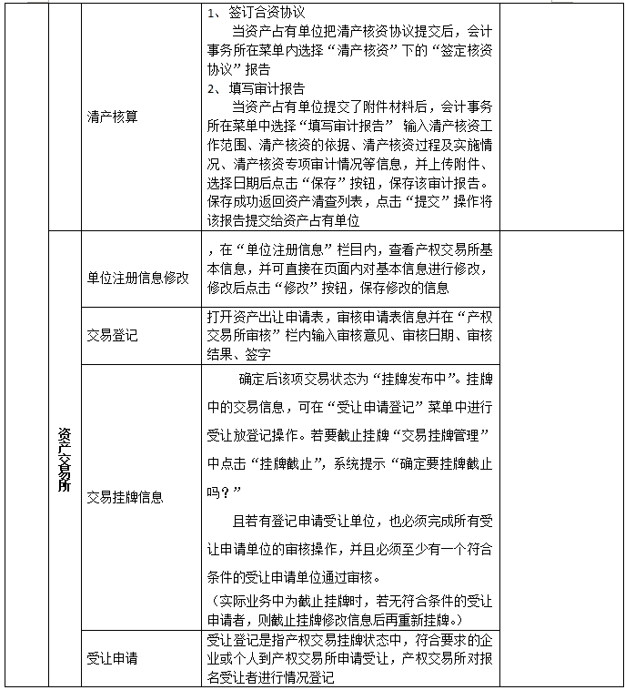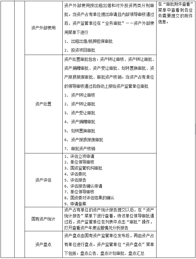 1、 主要業務包(bao)(bao)含(han):國有資(zi)(zi)(zi)(zi)(zi)產(chan)(chan)(chan)卡片管(guan)(guan)理(li);資(zi)(zi)(zi)(zi)(zi)產(chan)(chan)(chan)購置及(ji)審(shen)批(pi)(pi); 2、 國有資(zi)(zi)(zi)(zi)(zi)產(chan)(chan)(chan)領(ling)用、入(ru)庫、變動及(ji)審(shen)批(pi)(pi);資(zi)(zi)(zi)(zi)(zi)產(chan)(chan)(chan)出租出借(jie)、擔保抵(di)押、對外投資(zi)(zi)(zi)(zi)(zi)及(ji)審(shen)批(pi)(pi); 3、 國有資(zi)(zi)(zi)(zi)(zi)產(chan)(chan)(chan)轉讓(rang)、捐(juan)贈、劃轉、置換(huan)、報廢報損與核(he)銷(xiao)及(ji)審(shen)批(pi)(pi)。 4、在業務流程(cheng)中,由包(bao)(bao)含(han)著(zhu)資(zi)(zi)(zi)(zi)(zi)產(chan)(chan)(chan)盤(pan)點;資(zi)(zi)(zi)(zi)(zi)產(chan)(chan)(chan)統計;產(chan)(chan)(chan)權登記及(ji)變更、年檢;產(chan)(chan)(chan)權界(jie)定;清產(chan)(chan)(chan)核(he)資(zi)(zi)(zi)(zi)(zi);資(zi)(zi)(zi)(zi)(zi)產(chan)(chan)(chan)評估(gu);資(zi)(zi)(zi)(zi)(zi)產(chan)(chan)(chan)收益管(guan)(guan)理(li)等。 5、本軟(ruan)件嚴格按照資(zi)(zi)(zi)(zi)(zi)產(chan)(chan)(chan)管(guan)(guan)理(li)流程(cheng),通過資(zi)(zi)(zi)(zi)(zi)產(chan)(chan)(chan)管(guan)(guan)理(li)員、單(dan)(dan)位領(ling)導、上級管(guan)(guan)理(li)部門、資(zi)(zi)(zi)(zi)(zi)產(chan)(chan)(chan)監管(guan)(guan)部門層層審(shen)核(he)和審(shen)批(pi)(pi)來完(wan)成(cheng)業務流程(cheng)。 6、輔助單(dan)(dan)位包(bao)(bao)含(han):產(chan)(chan)(chan)權交易所、國有資(zi)(zi)(zi)(zi)(zi)產(chan)(chan)(chan)界(jie)定中介單(dan)(dan)位(律師事(shi)務所);資(zi)(zi)(zi)(zi)(zi)產(chan)(chan)(chan)評估(gu)機(ji)構、會計事(shi)務所四種(zhong)角色。 國有資(zi)(zi)(zi)(zi)(zi)產(chan)(chan)(chan)交易流程(cheng)