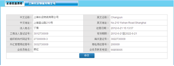 企(qi)業信息顯示的(de)是貨代公司(si)的(de)基本信息,包(bao)括貨代公司(si)注冊時添加的(de)信息和注冊完成后(hou)自動生成的(de)信息。
