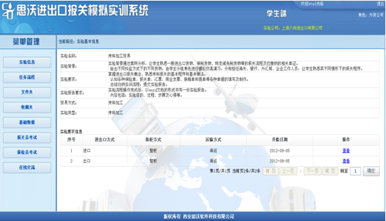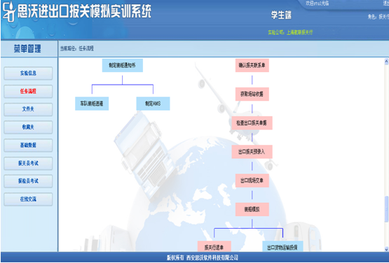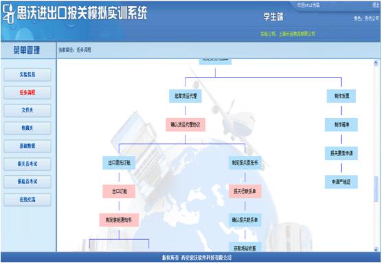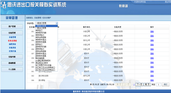 3、教(jiao)師端(duan)可(ke)以有針對性地采取任(ren)(ren)務驅動,設置不同(tong)貿易方式的(de)實驗(yan)。學(xue)(xue)生根據教(jiao)師設置的(de)實驗(yan)信息(xi)完成相關(guan)任(ren)(ren)務。學(xue)(xue)生端(duan)設置由多(duo)個(ge)角色。學(xue)(xue)生可(ke)以同(tong)時扮(ban)演不同(tong)個(ge)角色,獨立完成任(ren)(ren)務。也(ye)可(ke)以多(duo)個(ge)學(xue)(xue)生分別(bie)扮(ban)演不同(tong)角色,共(gong)同(tong)完成相關(guan)任(ren)(ren)務。