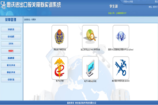實驗信息、任務流程(cheng)、文件夾、收藏夾、基礎數據和在(zai)線交流可(ke)參考(kao)外貿(mao)公司中相(xiang)同的模(mo)塊(kuai)。