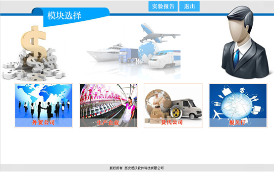 學生(sheng)端有(you)四個(ge)角色(se):外貿公司(si)(si)、生(sheng)產商、貨代(dai)公司(si)(si)和報關行(xing)。一(yi)個(ge)學生(sheng)可模擬一(yi)個(ge)或多(duo)個(ge)角色(se)。學生(sheng)可選擇(ze)任何一(yi)個(ge)或多(duo)個(ge)角色(se)進(jin)行(xing)注冊,四個(ge)企(qi)業信息注冊完成(cheng)后(hou)可開(kai)始實驗。
