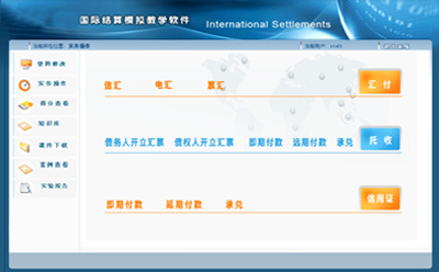 《思沃國際結(jie)算模擬實(shi)訓(xun)系統》從高(gao)校國際結(jie)算教(jiao)學的(de)實(shi)際需求出發,主要(yao)從匯(hui)付、托收(shou)、信(xin)用證三(san)種不同類型(xing)的(de)結(jie)算方(fang)式(shi),本教(jiao)學平(ping)臺軟件逼真地模擬了出口商(shang)、進口商(shang)、匯(hui)入行、匯(hui)出行等(deng)角(jiao)色(se)的(de)辦(ban)事流程。
