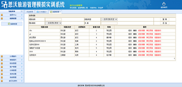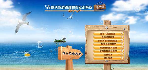 思沃旅(lv)(lv)(lv)游(you)(you)管(guan)理模(mo)擬實訓(xun)(xun)(xun)系統分(fen)(fen)為(wei)(wei)(wei)模(mo)擬操作(zuo)和旅(lv)(lv)(lv)游(you)(you)知識練習(xi)兩(liang)大模(mo)塊,涵蓋旅(lv)(lv)(lv)行社業(ye)的(de)分(fen)(fen)銷、操作(zuo)、結算、統計(ji)分(fen)(fen)析等(deng)各大業(ye)務(wu)模(mo)塊,該實訓(xun)(xun)(xun)教學(xue)(xue)(xue)平臺軟(ruan)(ruan)件具備團(tuan)隊計(ji)劃、旅(lv)(lv)(lv)游(you)(you)預(yu)訂、客(ke)房預(yu)訂、機(ji)票預(yu)訂、景點門票預(yu)訂、團(tuan)餐預(yu)訂、車輛預(yu)訂、收付(fu)款管(guan)理、供應商、團(tuan)隊客(ke)戶(hu)、VIP散客(ke)管(guan)理等(deng)功(gong)能。從旅(lv)(lv)(lv)行社經營(ying)管(guan)理、酒店經營(ying)管(guan)理、旅(lv)(lv)(lv)游(you)(you)資(zi)源開發與管(guan)理、旅(lv)(lv)(lv)游(you)(you)行政管(guan)理、導游(you)(you)實務(wu)與技(ji)巧(qiao)五個(ge)方(fang)(fang)面(mian)讓(rang)學(xue)(xue)(xue)生參與旅(lv)(lv)(lv)游(you)(you)管(guan)理的(de)模(mo)擬操作(zuo),每個(ge)方(fang)(fang)面(mian)又細分(fen)(fen)為(wei)(wei)(wei)實際流程(cheng)中(zhong)涉及的(de)每個(ge)細節,因(yin)此(ci),學(xue)(xue)(xue)生可以(yi)從中(zhong)學(xue)(xue)(xue)習(xi)到旅(lv)(lv)(lv)游(you)(you)管(guan)理的(de)全面(mian)的(de)操作(zuo)流程(cheng)。此(ci)外(wai),軟(ruan)(ruan)件中(zhong)教師端(duan)對應的(de)實驗設(she)置(zhi),讓(rang)教師可以(yi)方(fang)(fang)便地為(wei)(wei)(wei)學(xue)(xue)(xue)生設(she)置(zhi)實驗的(de)不同因(yin)素(su),同時,教師還可以(yi)查看學(xue)(xue)(xue)生的(de)操作(zuo)結果,從而能夠(gou)對學(xue)(xue)(xue)生的(de)實驗進行評價。教學(xue)(xue)(xue)軟(ruan)(ruan)件系統的(de)使用可以(yi)提(ti)(ti)高學(xue)(xue)(xue)生的(de)學(xue)(xue)(xue)習(xi)興趣,同時也為(wei)(wei)(wei)教師減輕工作(zuo)負擔。本公司為(wei)(wei)(wei)了更好(hao)滿足高校(xiao)的(de)教學(xue)(xue)(xue)需求,會根據高校(xiao)的(de)需求提(ti)(ti)供旅(lv)(lv)(lv)游(you)(you)管(guan)理實訓(xun)(xun)(xun)室解決(jue)方(fang)(fang)案。